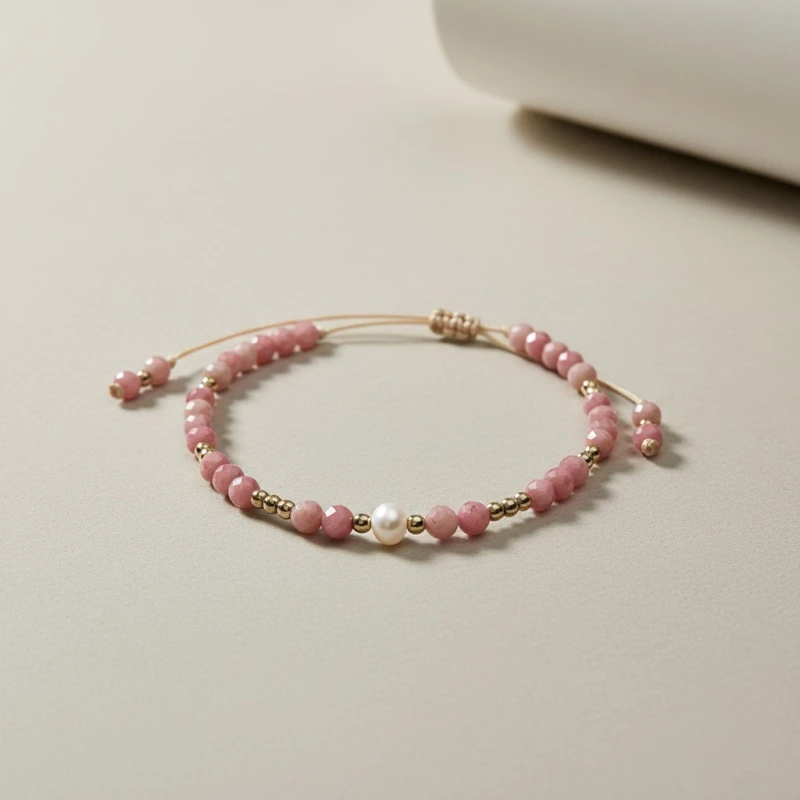 Bransoletka na sznurku z rodonitem i perłą – talizman miłości i równowagi