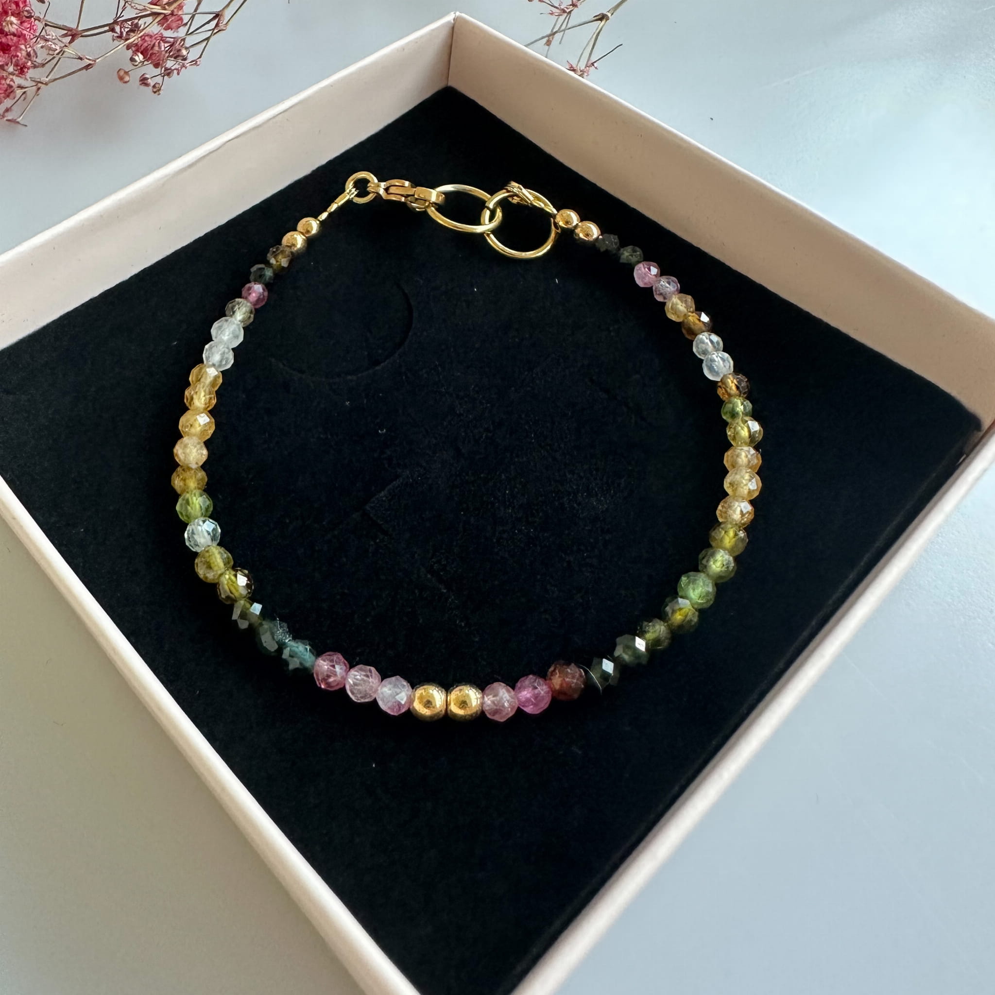 Jeśli szukasz czegoś, co doda koloru i wyjątkowości Twoim stylizacjom, nasze minimalistyczne bransoletki z kolorowych turmalinów są idealnym wyborem!