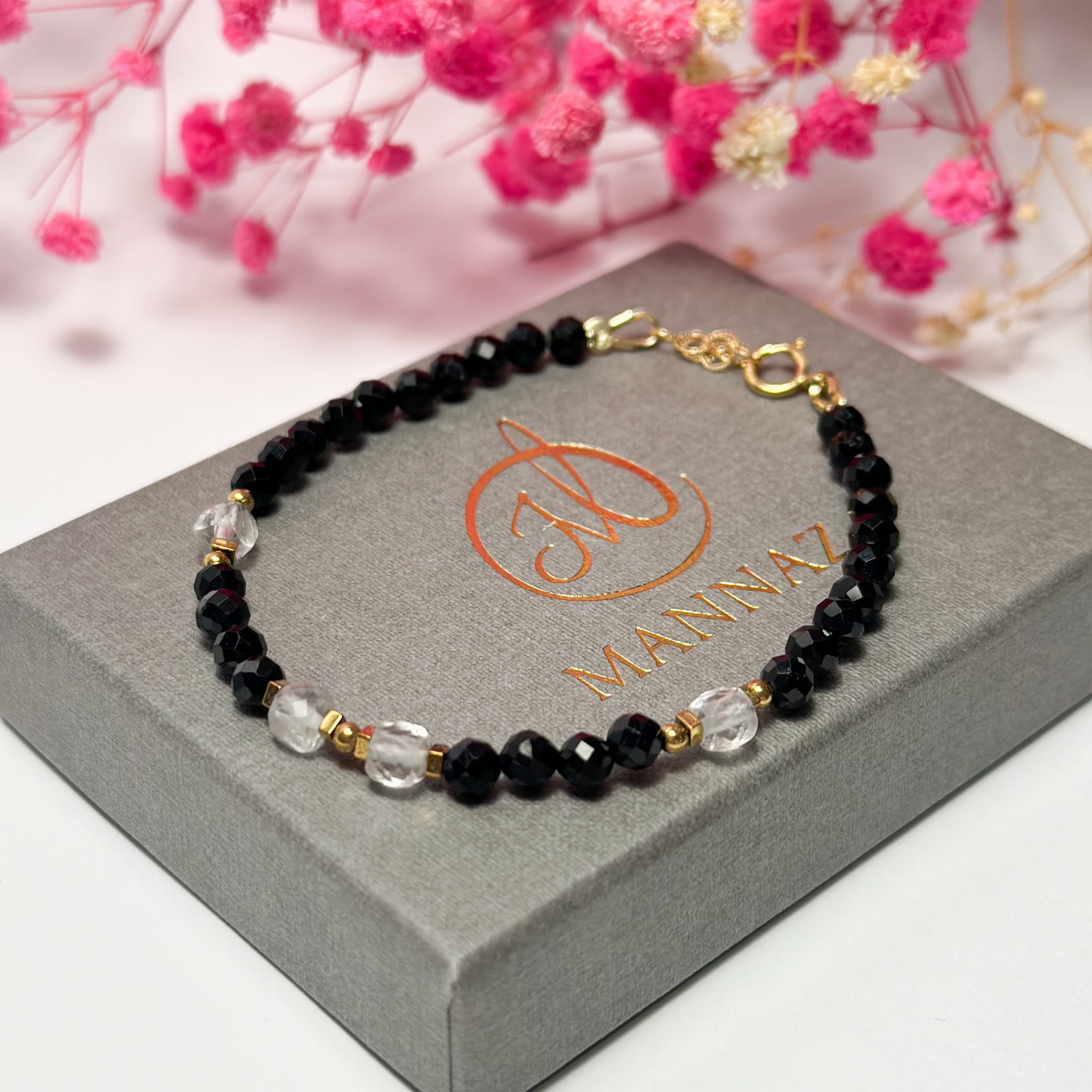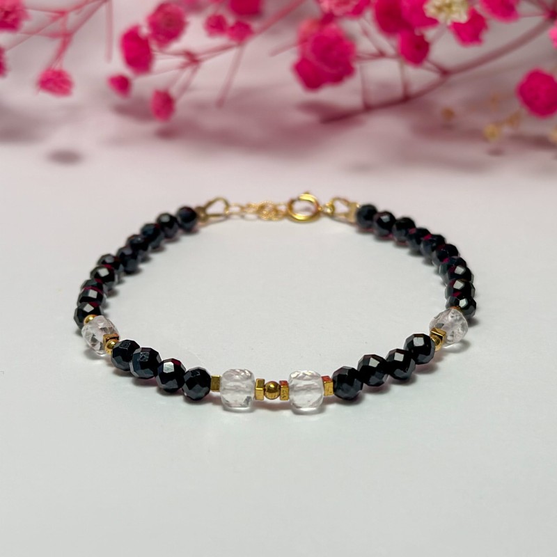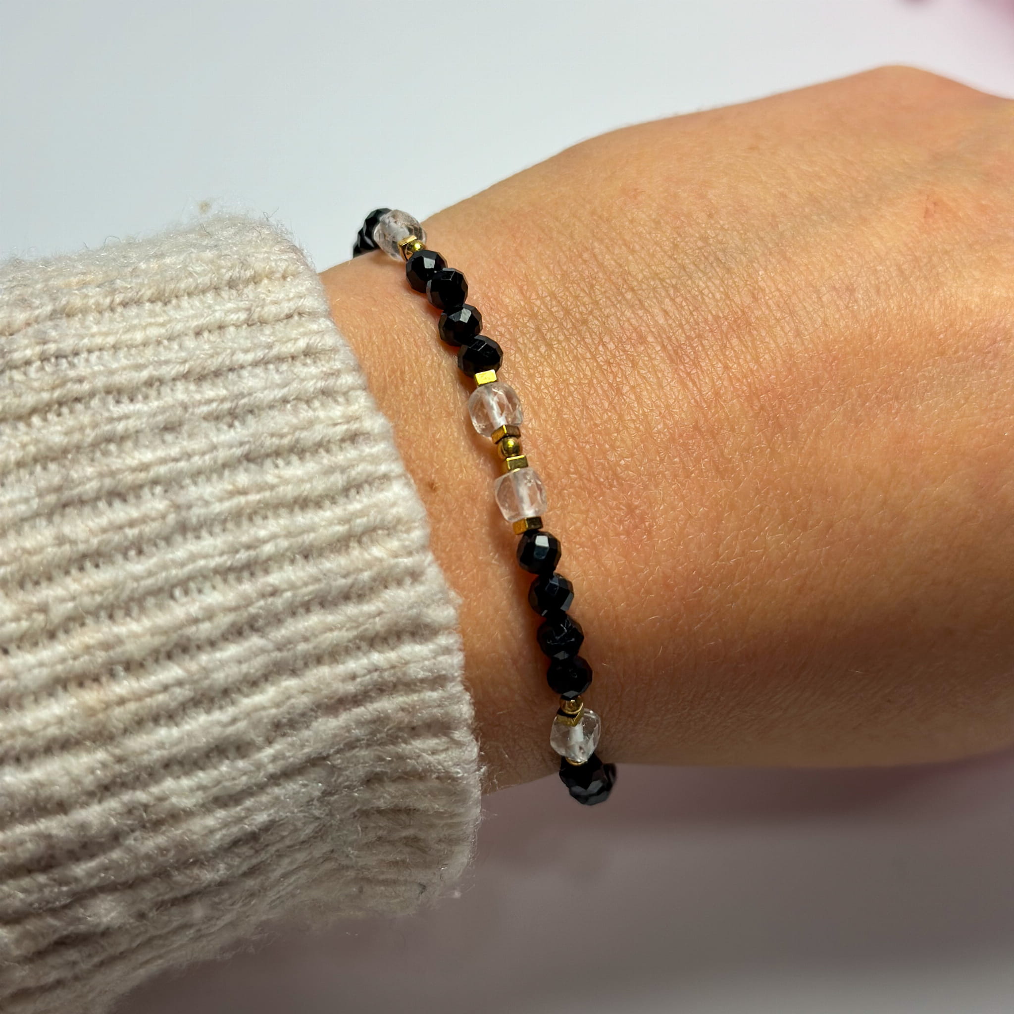 Bransoletka z czarnego turmalinu i kryształu górskiego z regulacją