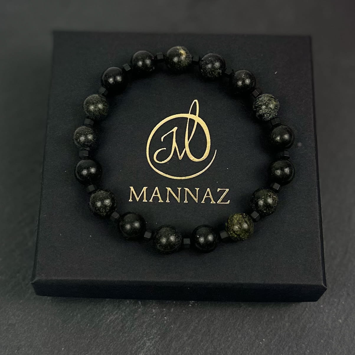 Męska bransoletka z serpentynitu i hematytu