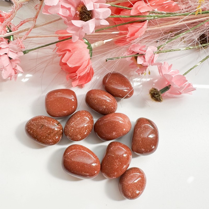 Piasek pustyni bywa też nazywany kamieniem tysiąca słońc, z powodu swojej ciepłej, brązowo-czerwonej barwy z dodatkiem złocistych drobin. Jest to szkło awenturynowe, które powstaje z piasku kwarcowego oraz dodatkowych minerałów, z których szczególnie miedź w połączeniu ze szkłem ma działenie większe niż sama w sobie.