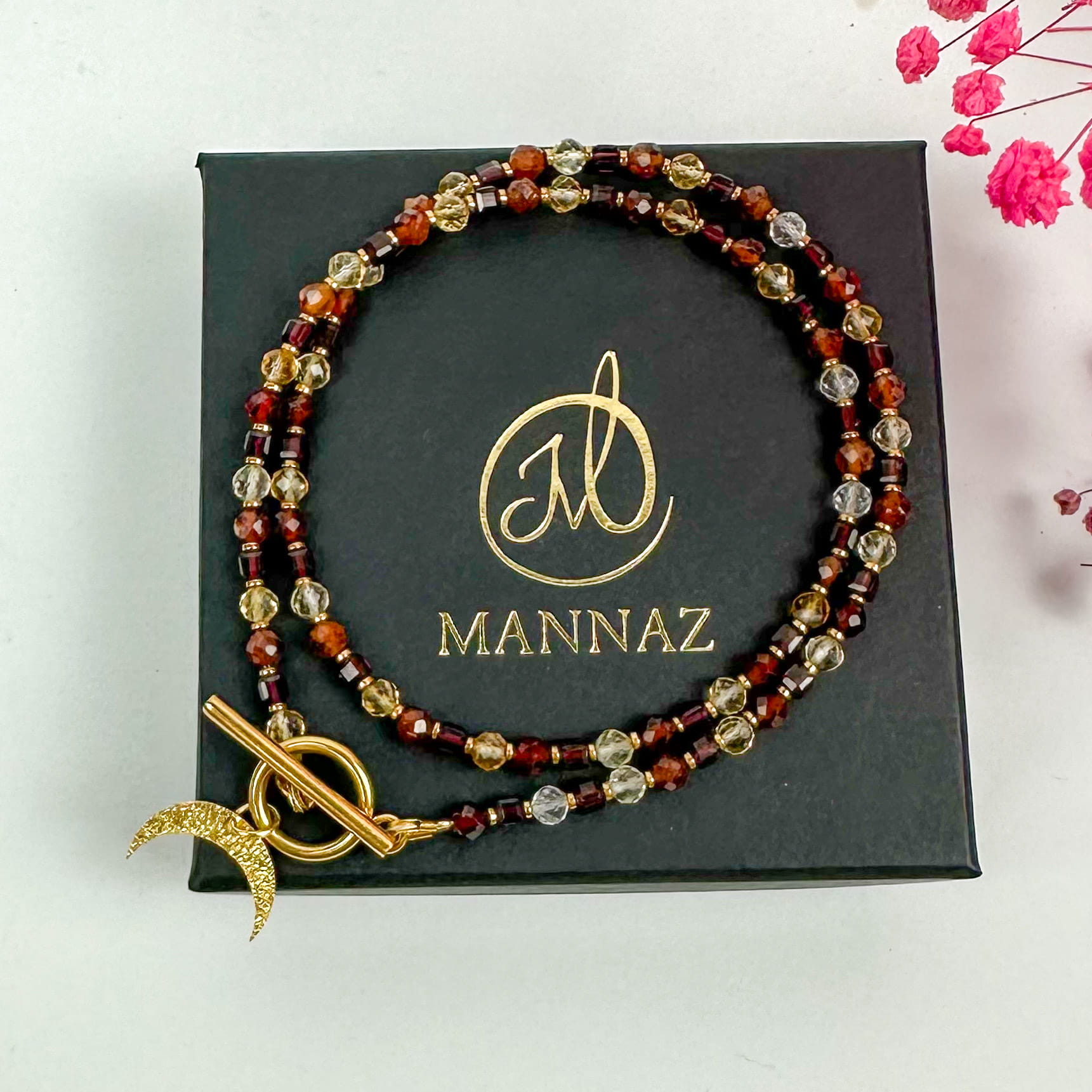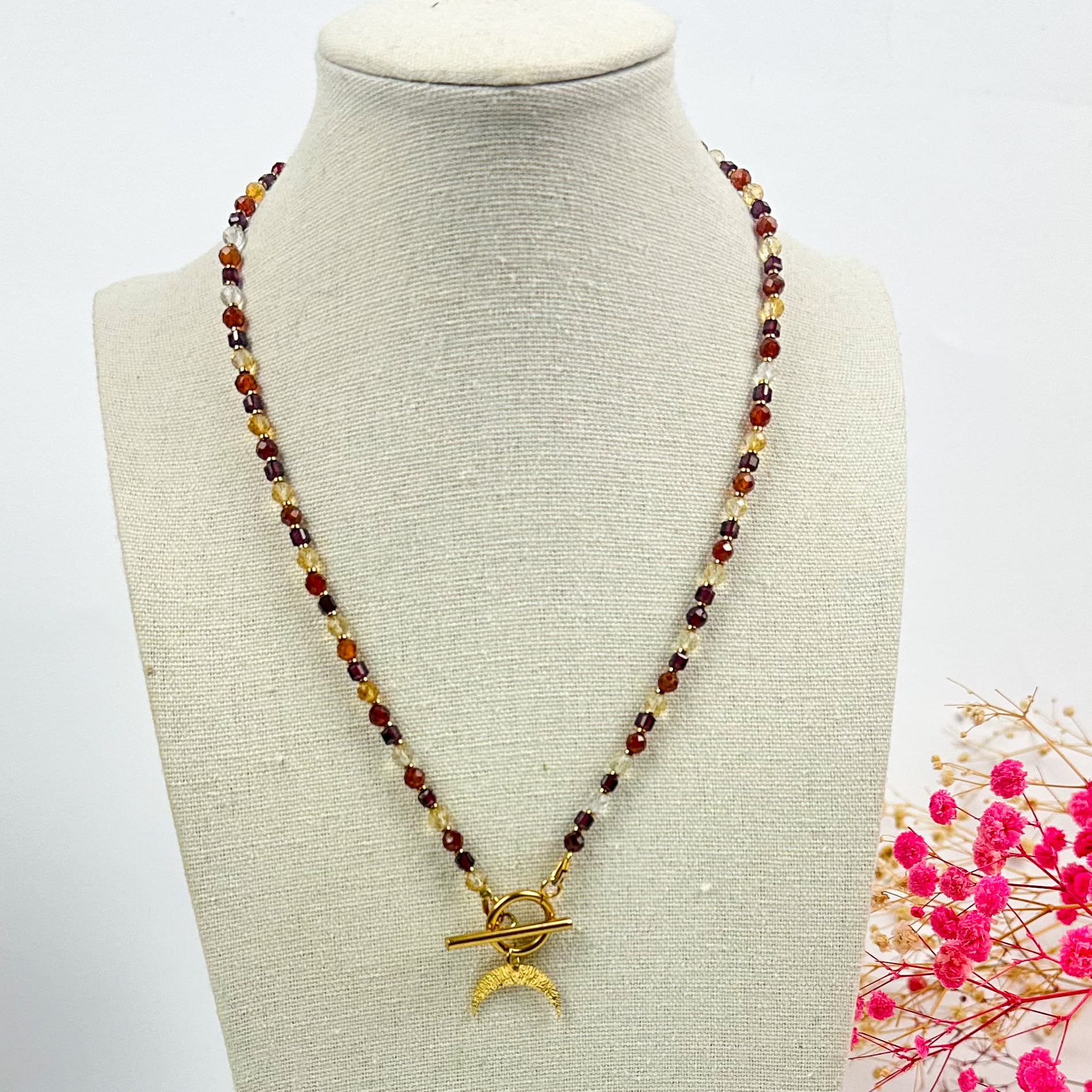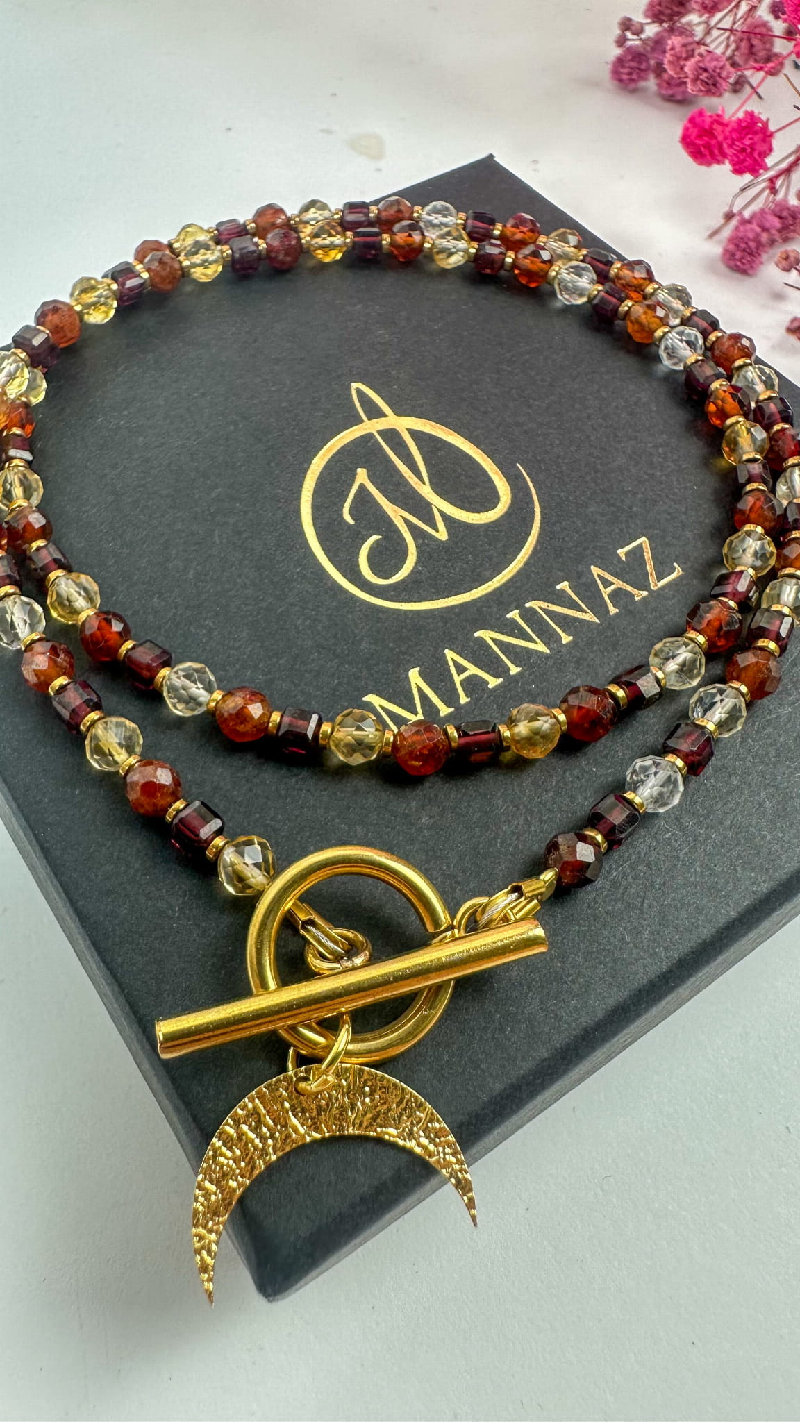 Naszyjnik damski z naturalnych granatów z zawieszką księżyc